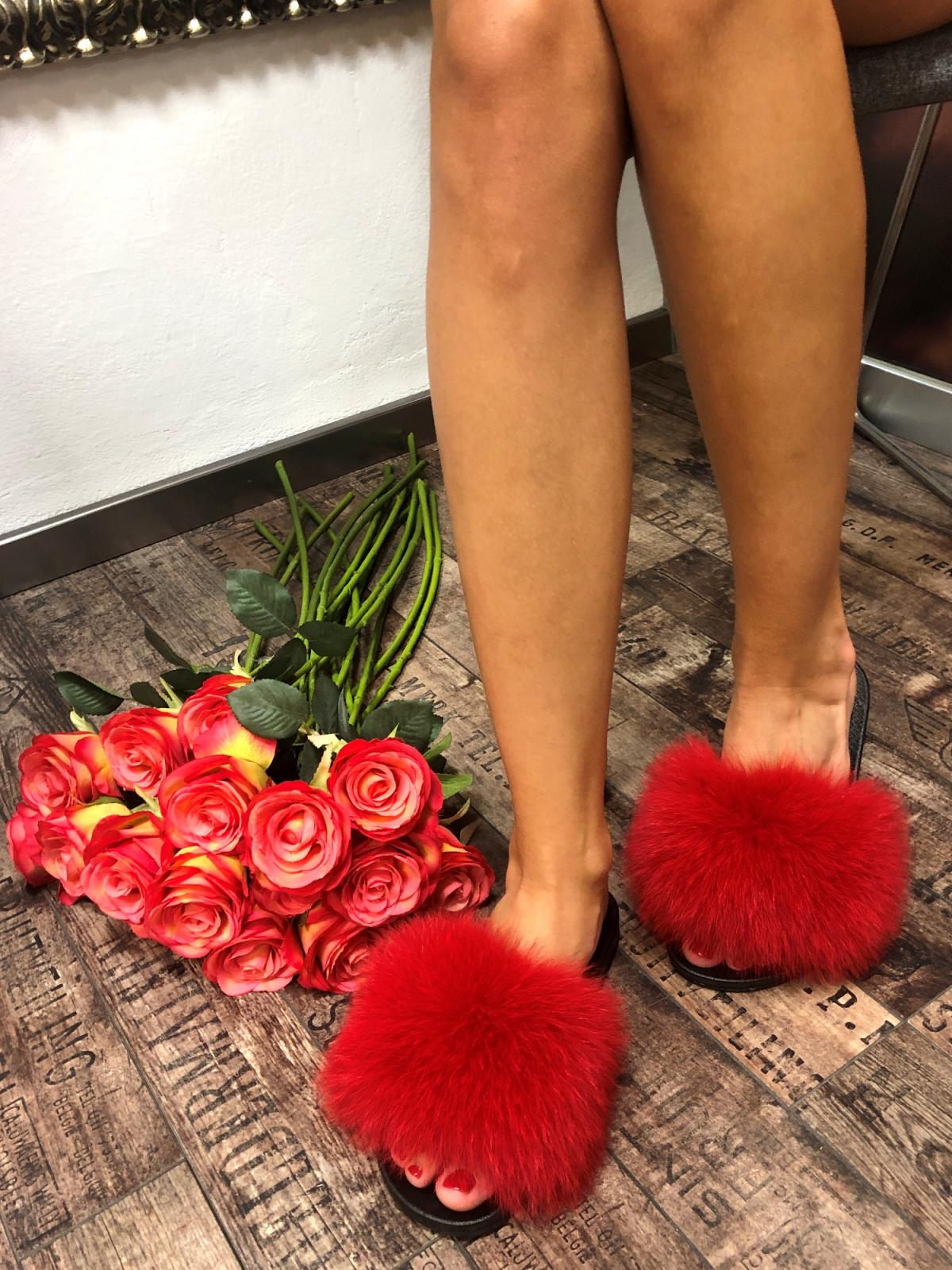 Dámske šľapky s kožušinkou z líšky - červenéHuňaté kožušinkové šľapky sú obrovským hito...